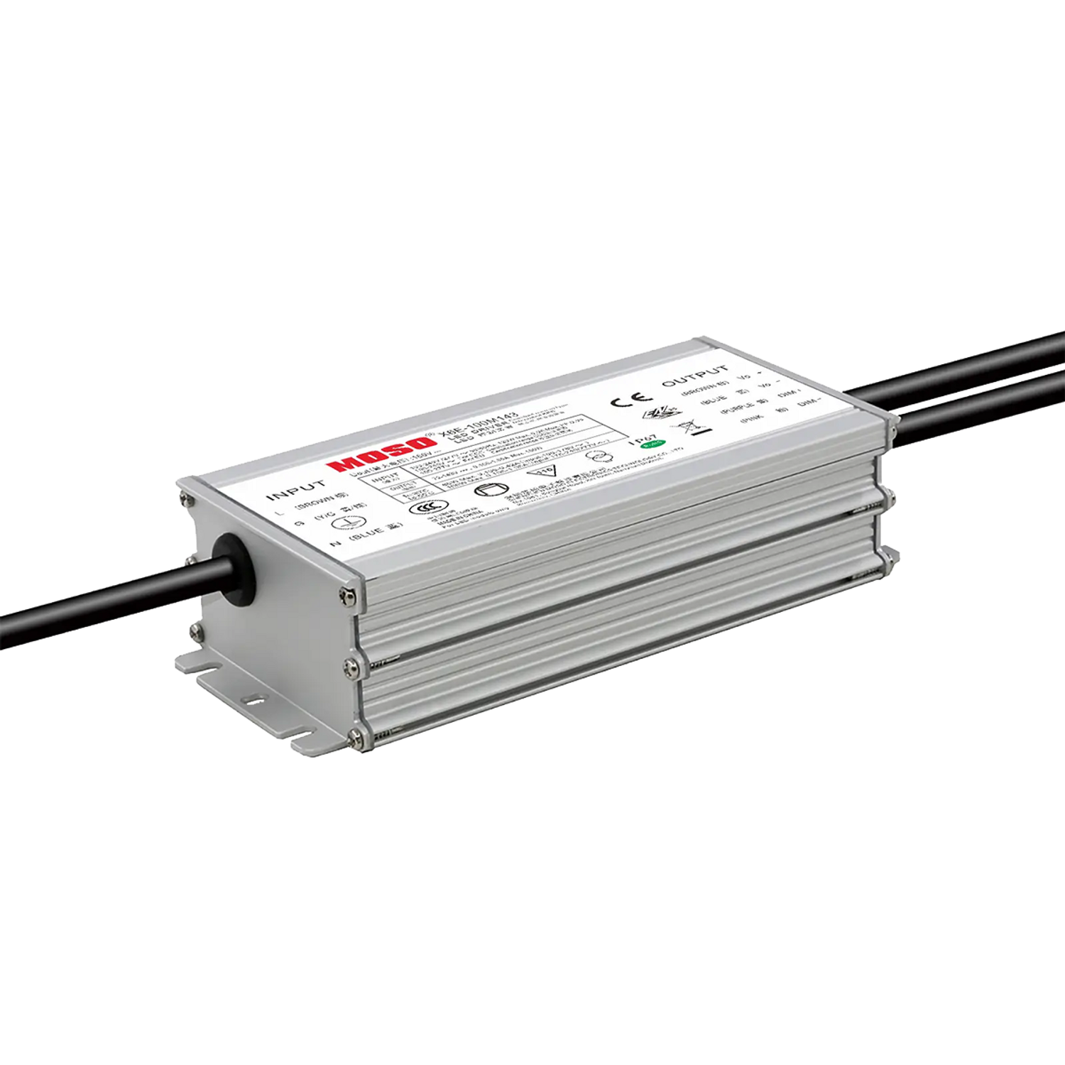 Driver de LED versátil com entrada de 90–305 VCA, dimerização 3 em 1, classificação IP67 à prova d'água, proteção contra surtos e garantia de 5 anos — perfeito para soluções de iluminação externa e industrial.